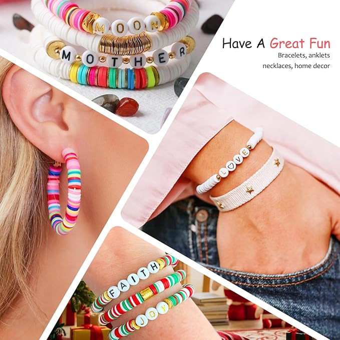 - Premium Material: These clay beads for bracelets are handmade from premium polymer clay; The diameter of each bead is 6mm, the aperture is 2mm, and the thickness is 1mm; The bead bracelet made from them is safe, lightweight, comfortable to wear, and waterproof; These properties make the bracelet easy to clean after events such as parties and concerts