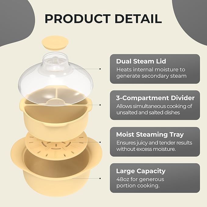 - Ready in 3 Minutes or Less: Ditch the stove! Use as a microwave steamer for vegetables, proteins, or snacks for convenient, fuss-free meals, even on your busiest days