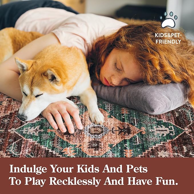 Lahome 6x9 Rugs for Living Room - Washable Non-Slip Ultra-Thin Living Room Carpet, Non-Shedding Oriental Vintage Distressed Carpet Rug for Dining Room Bedroom Office