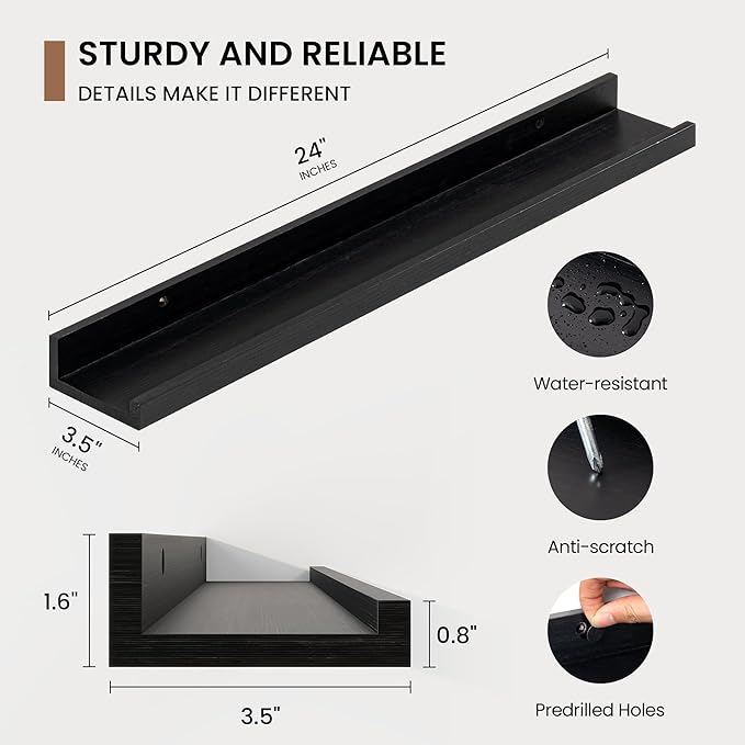 - Chic Minimalist Design: Solid pine wood picture ledge shelves available in multiple colors and sizes, these picture shelves complement any decor, from modern to farmhouse. Use them alone or in a gallery-style arrangement to create a stylish focal point