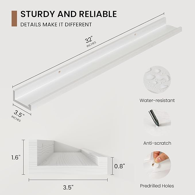 - Chic Minimalist Design: Solid pine wood picture ledge shelves available in multiple colors and sizes, these picture shelves complement any decor, from modern to farmhouse. Use them alone or in a gallery-style arrangement to create a stylish focal point