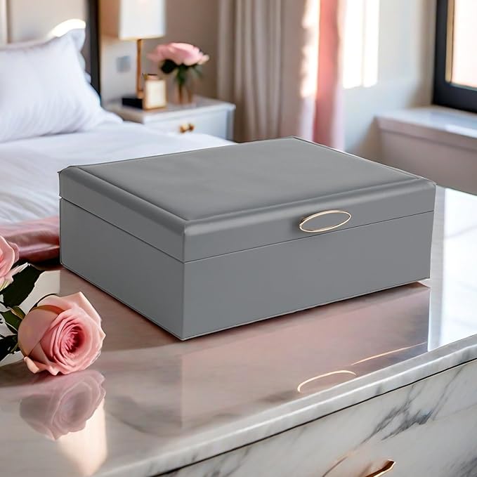 - Ideal for Every Jewelry Enthusiast:Designed for style-savvy ladies and trendy teens, the ASINGYER jewelry box is the ultimate blend of fashion and function. Its thoughtfully sized 9.52"L x 7.36"W x 3.5"H silhouette fits seamlessly on vanity tables, bedside cabinets, or dressing areas, adding a touch of elegance to your personal space while keeping essentials within arm's reach. Perfect for daily use or as a chic decor piece, it elevates organization without compromising on aesthetics