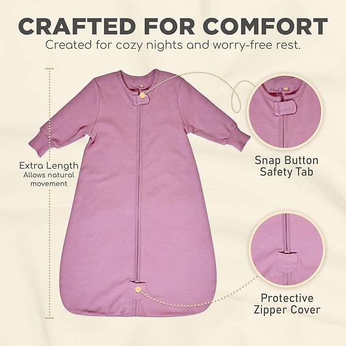 • 【ULTRA SOFT, PREMIUM, LONG SLEEVE BABY SLEEP SACK】— Mama Cheetah's long sleeve wearable blankets are crafted from the finest organic cotton, ultra-soft, breathable, and gentle on your baby’s delicate skin, ensuring premium comfort and a cozy night’s sleep. Made from 100% premium organic cotton, this long sleeve wearable blanket offers ultimate softness and a TOG rating of 0.5, ensuring your baby stays warm without overheating. This is a must-have baby essential!