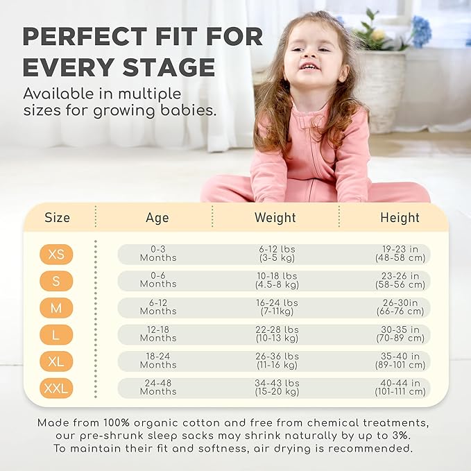 • 【PERFECT FIT FOR YOUR GROWING BABY】— To keep them comfortable & safe as they transition from newborns to curious adventurers, we created 4 different sizes of wearable blankets — Small sleeping sacks for 0-6 months babies, 10-18 lbs, Medium sleeping sacks for 6-12 months babies, 16-24 lbs, Large sleep sacks for 12-18 months babies, 22-28 lbs, & X-Large sleep sacks for 18-24 months babies, 26-36 lbs.