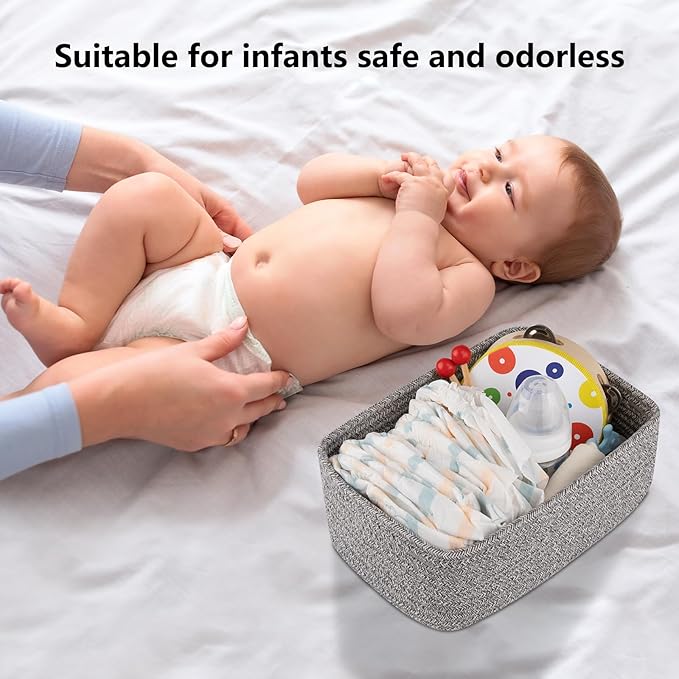 - [Premium Cotton Material]:Our cute baby storage baskets are made of high quality cotton hand-woven by workers, soft and odorless, no sharp edges and corners, very friendly to babies and pets, a good choice for baby-sitting baskets and dog or cat toy baskets