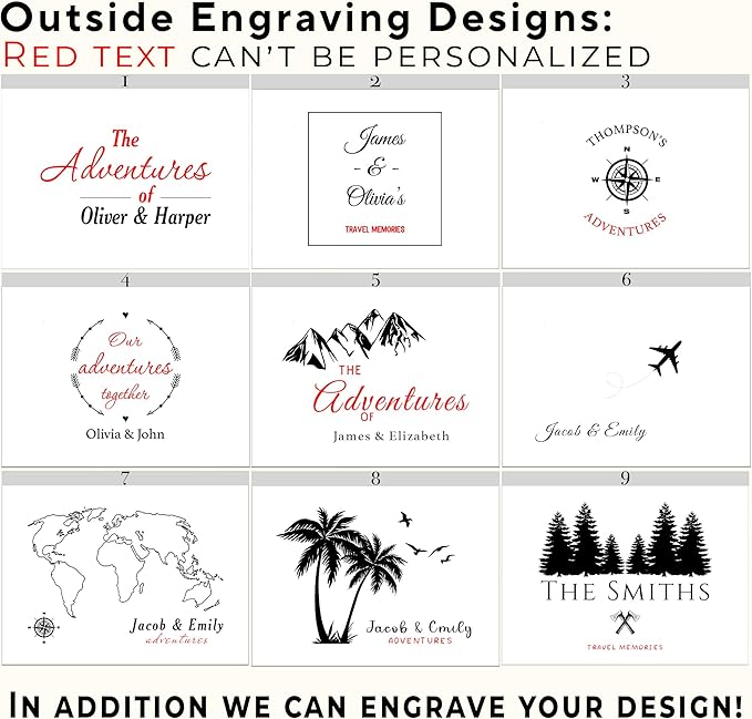 - Customized: this bamboo travel box for memories can be engraved with designs we offered adding the couple's names, or a single name to make it unique. We’ll use the font style showcased in the photos. Additionally, it can be engraved inside, on the other lid's side, to create a surprise message for the recipient. Different font options for inside engraving