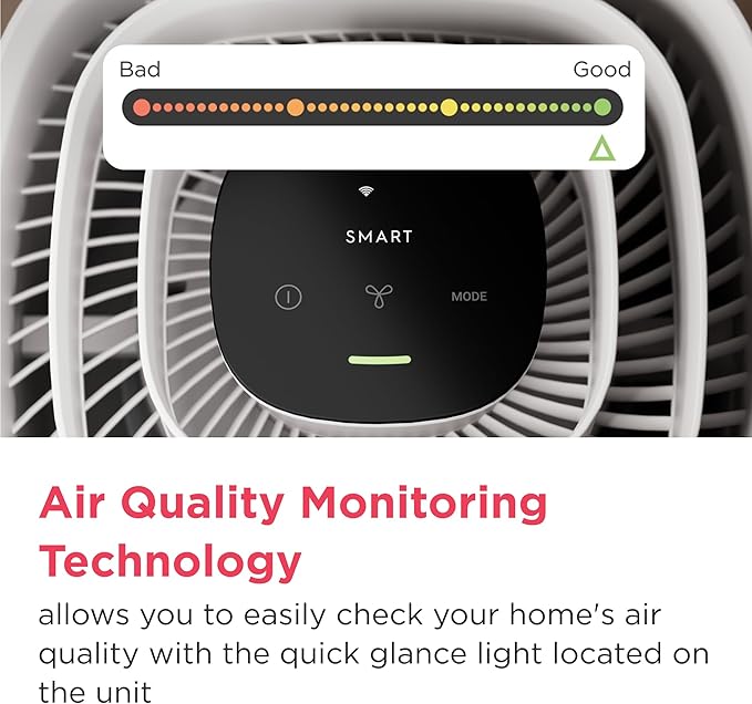 - Smart Air Quality Monitoring: The built-in light indicator lets you easily monitor your homeβs air quality at a glance, while Smart Mode automatically adjusts settings based on air quality changes