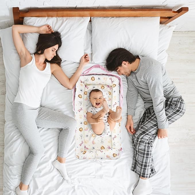 ZIPPER DESIGN:Baby lounger nest zipper design,remove the jacket for easy cleaning.Keep it clean at all times and grow up healthy and happy along with your baby!
