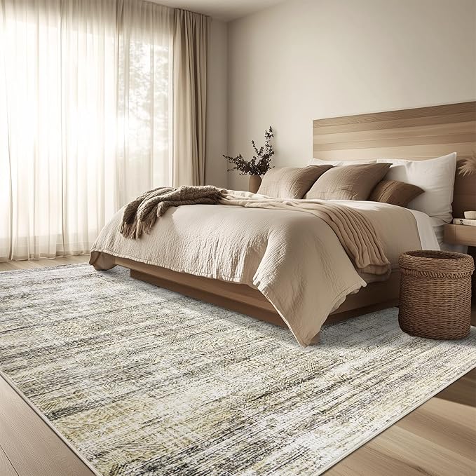 8x10 Area Rug Living Room Rugs - Washable Rug Large Modern Abstract Soft Thin Carpets Indoor Floor No Slip Vintage Carpet for Bedroom Under Dining Table Nursery Home Office Decor Nature