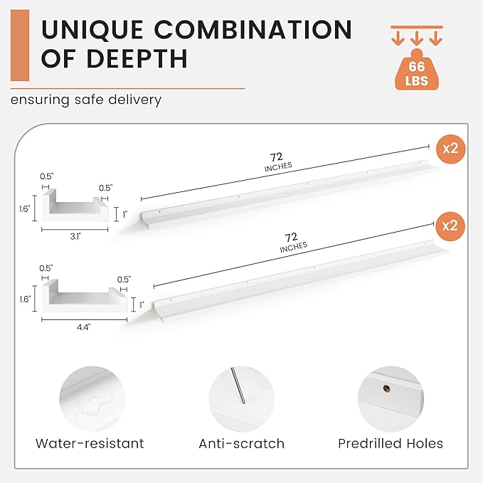 • 【Easy to Install】FLYJOE picture ledge shelves are quick and easy to install! Each set comes with pre-drilled holes and all necessary hardware, including a mini level for perfect alignment. With simple instructions, you can have your shelves up in minutes, allowing you to start decorating right away
