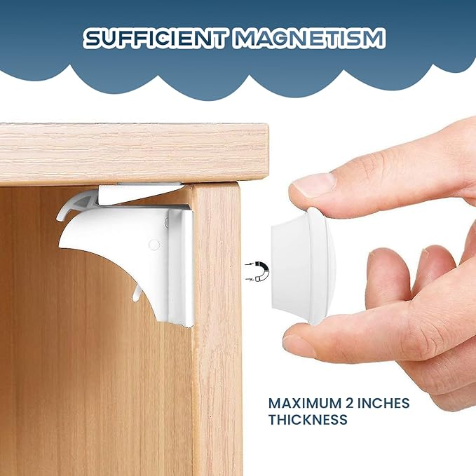 Wide Compatibility – Works on smooth surfaces up to 1.5 inches thick, making it perfect for baby proofing cabinets, cupboards, drawers, and more. Ideal for child locks for cabinets and drawers offering secure storage and child safety.