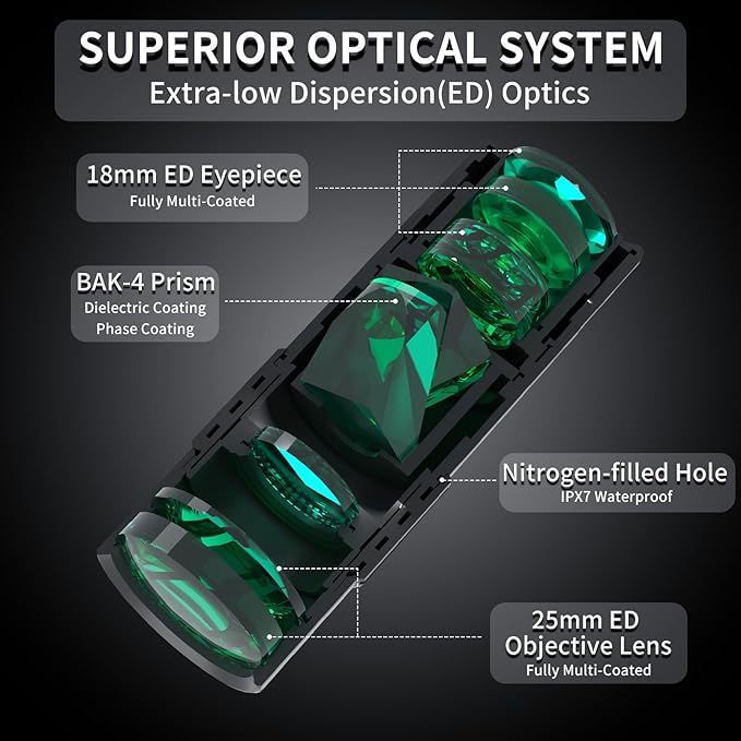 IPX7 WATERPROOF MONOCULAR: nitrogen-filled housing with IPX7 waterproof and fog-proof construction ensures reliable performance in any weather condition