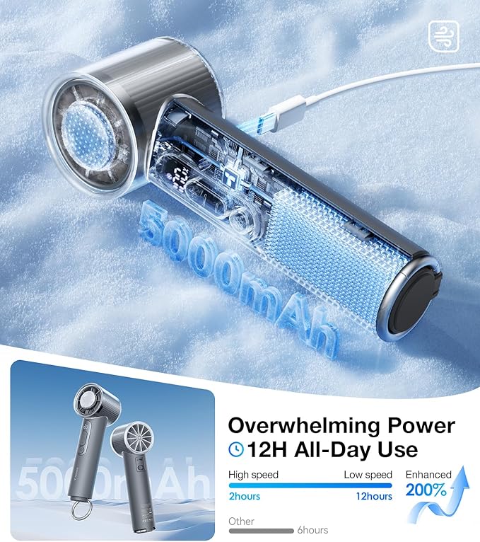 - Endurance Battery Life Meets Various Recharge: "Conquer 12-hour outdoor activity or 3-hour emergency cool-downs with our 5000mAh powerhouse. Recharge anxiety-free via ANY USB-C source (laptops, car outlets, power banks) while continuing to use it. Never miss a sunset hike or outdoor meeting again – we've engineered endurance to match your boldest plans.