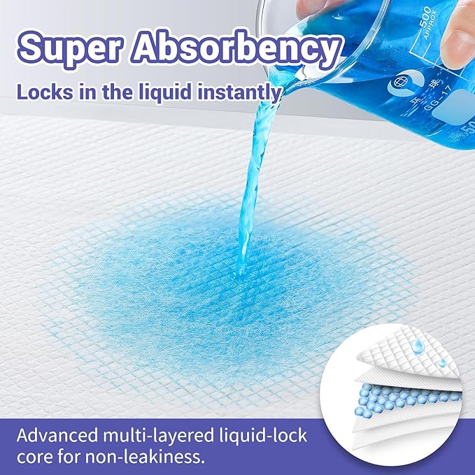 - [ Ultra Absorbent & Quick-Drying ]: Features a 5-layer design with polymer water-absorbent resin and SAP fluff for instant absorption. Locks moisture away from the surface, keeping skin dry and preventing leaks.