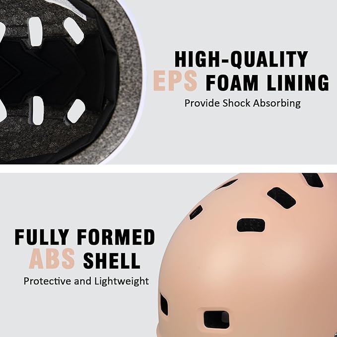• The kids bicycle helmet is made of rugged ABS shell and shock-absorbing EPS foam to provide comprehensive protection.