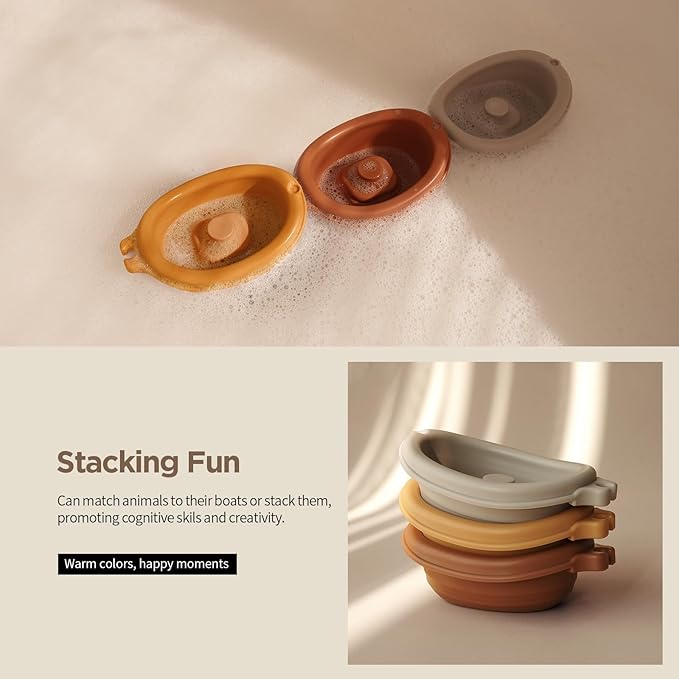 - Multi-Functional Toys: Includes 3 brightly colored boats and 3 adorable finger puppets, promoting toddlers' color recognition and animal cognition, enhancing their creativity and imagination.