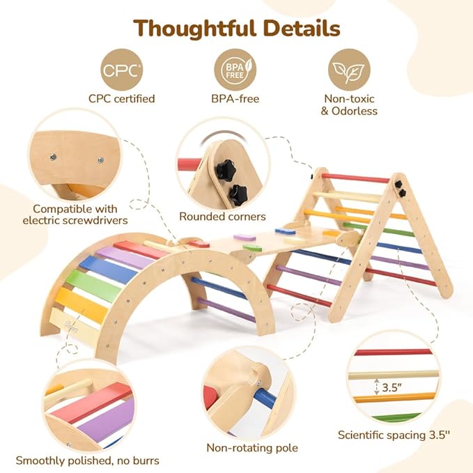 - Parent-Approved Safety & Friendly Design: Our toddler climbing toys are crafted with natural solid wood. Featuring smooth, rounded edges and safe rung spacing, they eliminate health risks and prevent injuries. Ideal for indoor use, they provide a safe, unrestricted play environment that supports your child's growth and development, giving parents peace of mind