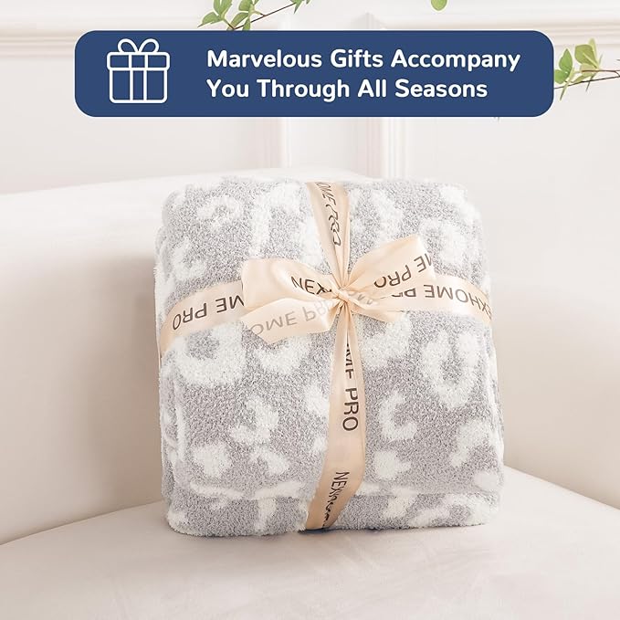 NEXHOME PRO Leopard Soft Blanket Twin Size, Fuzzy Throw Blanket for Couch Bed Sofa Picnic, Knit Blankets for Women Gifts Grey 60 x 80 inches