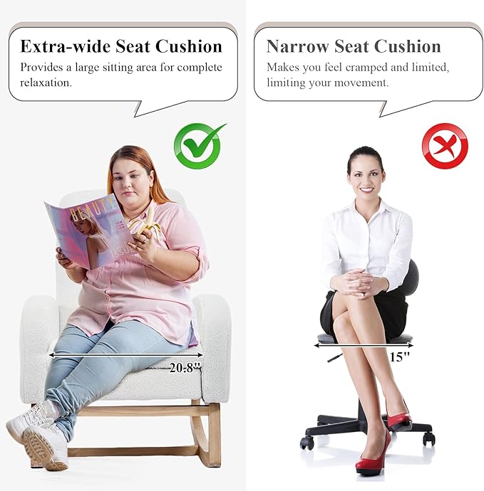 - Snug & Cozy - Covered with high-quality teddy for a soft and breathable surface, the glider chair brings you a luxurious yet casual sitting. Filled with high-density foam, the thick cushion are ensuring a soft, comfortable feel. This modern rocking chair with a high backrest will provide good support to your body. A refined curved wing back provides a comfortable sitting position for you to enjoy a leisurely time.