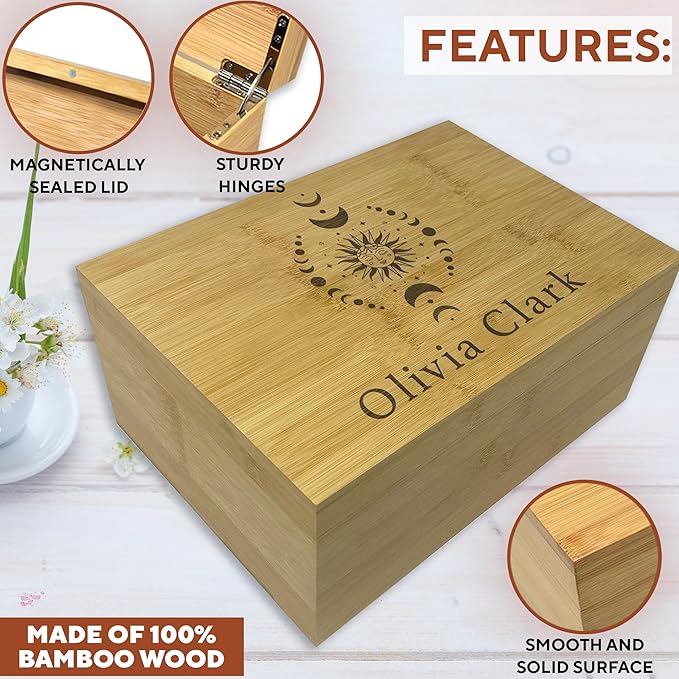 Witchy Gifts for Women - Personalized Crystal Stone Storage, Witchcraft Altar Box for Witchy Items, Pagan Spiritual Esoteric Gifts, Oracle Card Holder, Wiccan Box for Witch Essentials, 11x8x4,75 in