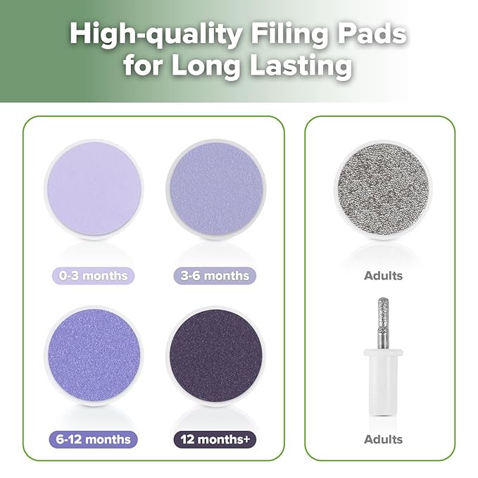 SAFE & GENTLE: With a pressure-activated safety system, our electronic baby nail file is gentle on tiny fingers, preventing injuries and giving parents peace of mind.