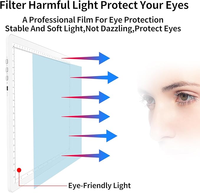 - 【3 Light Color Modes and 6 Levels/Stepless Dimming】This lightpad supports 3 colors of white light, natural light and warm light. Each lighting mode has 6 brightness dimming options. By shortly press the physical button to choose 6 levels brightness OR by long press the physical button to stepless adjust brightness. The Drawing Lightbox MAX brightness reach to 9000 Lux in the surface, which is great tool for cricut weeding vinyl. The light is even, non-glaring, no more eye fatigue when painting.
