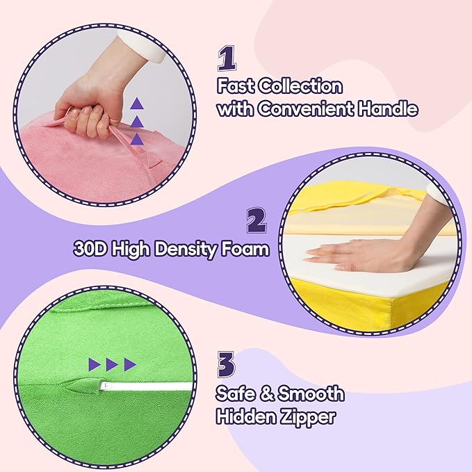 - Easy to Setup & Clean: The soft play climbing for toddlers is easy to assemble or detach with smooth hidden zippers. With washable covers, you can wash them anytime for brand-new look. They also feature handles for easy carrying. Your little one will love this soft play set!