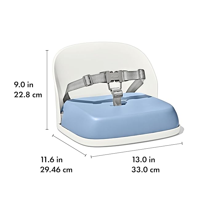 • Comfortable backrest locks open and keeps tots supported in most dining chairs so meals are within easy reach