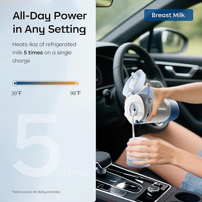 Long-Lasting Power: With an 18oz XL capacity and a powerful 11,000 mAh battery, it delivers up to 30 hours of warmth. Perfect for night feedings.One water refill lasts all night