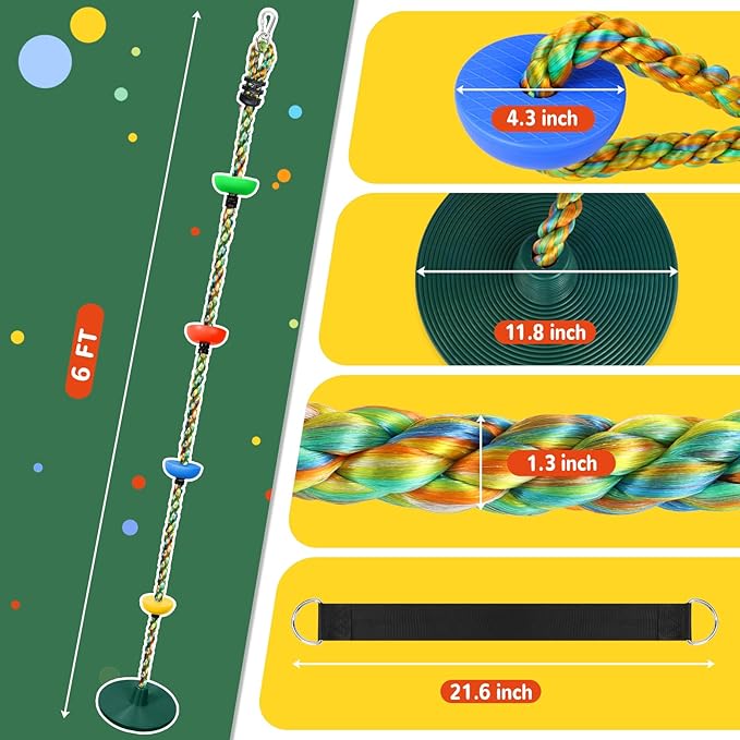 - 【UNLEASH MORE PLAY POSSIBILITIES】- Transform your tree swing into a multi-play adventure! This tree swing is a happy land where kids can swing, climb or stand, leveling up challenge and fun than regular swing. Adjustable rope length lets you customize height for each child—perfect for growing families with toddlers to teens.