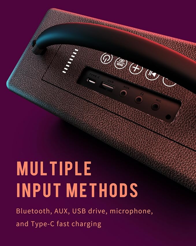 DINDIN Portable Bluetooth Speaker: 80W (Peak), 20H Playtime, Loud Wireless Wood Speakers with Bass, AUX and USB Input, Subwoofer, TWS Pairing, Vintage Speaker for Outdoor, Home, Office (Black)