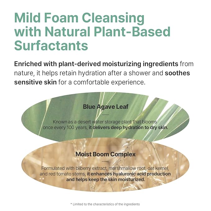 [Plant-Based Hydration] Infused with blue agave leaf extract and the MOIST BOOM COMPLEX to keep skin hydrated and nourished even after bath time.