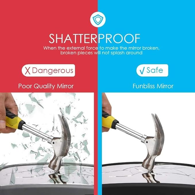 - The convex design of the Funbliss car seat mirror for baby rear facing provides a clear, wide view, reducing blind spots and ensuring a distortion-free look at your rear-facing babies without needing to stop