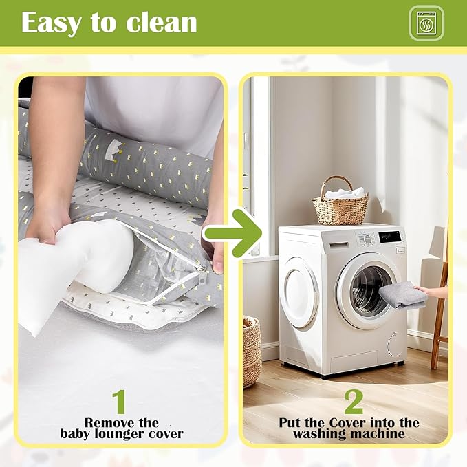 ZIPPER DESIGN:Baby lounger nest zipper design,remove the jacket for easy cleaning.Keep it clean at all times and grow up healthy and happy along with your baby!