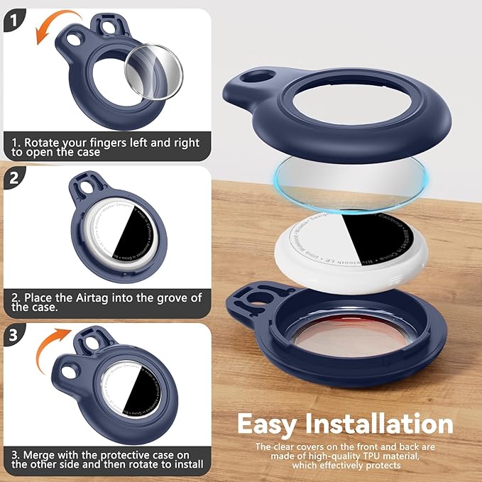- Easy Installation: No complicated operation is required, and you can fix AirTags in the Holder in a few easy steps;[Tips]: The specific installation steps can be seen in the picture; The protective cover of the Apple Airtags keychain will not affect the touch screen and shield the signal; Whether it is finding lost items or remote tracking, it can be easily achieved