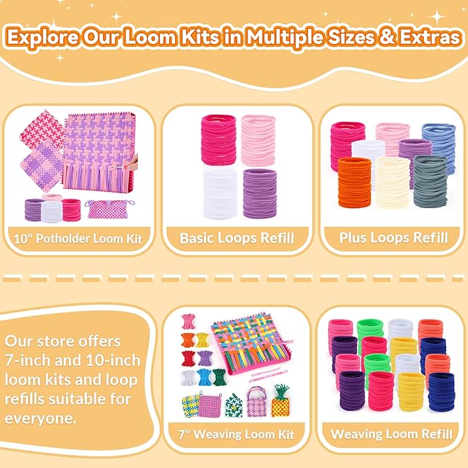 - Delicate Refill Loops for 10’’ Looms: 112 loom loops in 4 bright colors, it offers excellent elasticity and durability. You will create functional art and proudly use in the kitchen.