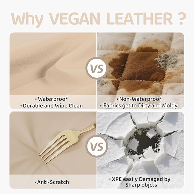 - Waterproof & Scratch-Proof: The durable vegan leather surface is fully waterproof and resists scratches, standing up to pet claws, spills, and daily wear. Just wipe clean with a damp cloth for effortless cleanup