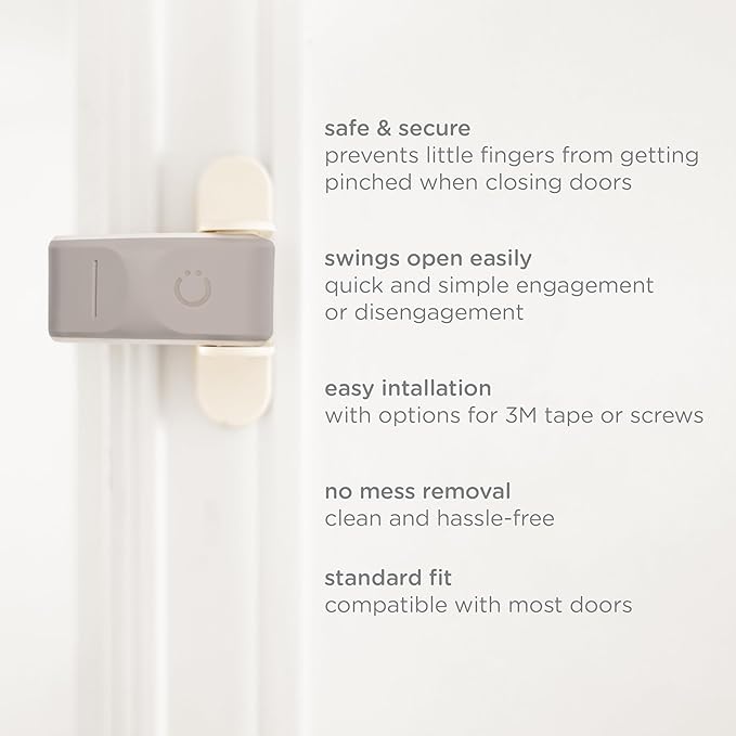 • Adjustable, Universal Fit: Designed to fit most standard doors, this door guard is designed to fit your needs. Available in white and taupe, the Ubbi Pinch Guard complements your home décor, offering a safety solution that looks as good as it functions.