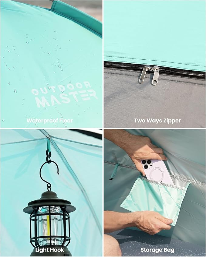 - Spacious & Roomy Design: Measures 87"L x 59"W x 48"H — 30% larger than most pop-up tents in this price range. Easily accommodates 3-4 people, offering ample room for family and friends to relax at the beach, park, or backyard