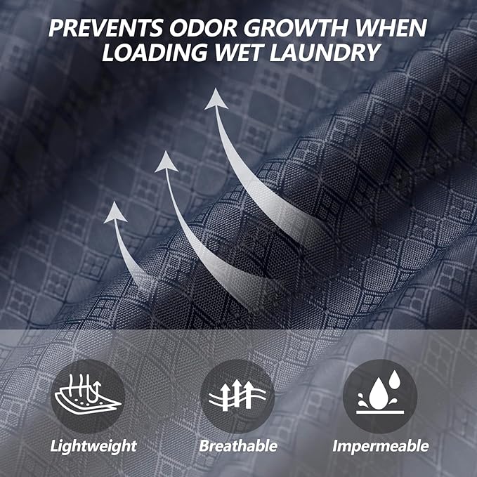 - [Water-Repellent/Lightweight/Breathable Nylon]: Made of washable and thin yet strong nylon, resists splashes from damp swimwear or pop-colored gym clothes.The material is both lightweight and breathable, preventing odors and keeping your laundry bag fresh.
