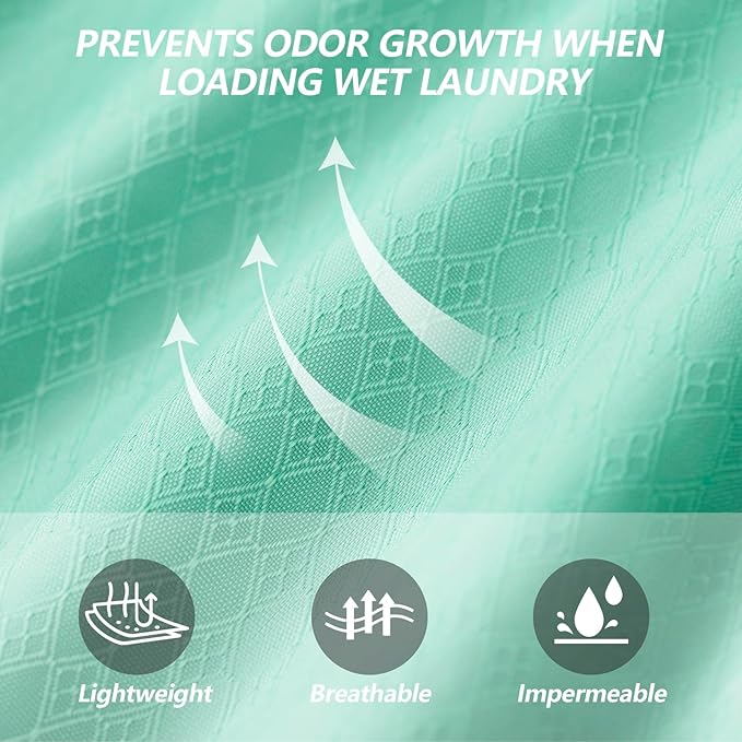- [Water-Repellent/Lightweight/Breathable Nylon]: Made of washable and thin yet strong nylon, resists splashes from damp swimwear or pop-colored gym clothes.The material is both lightweight and breathable, preventing odors and keeping your laundry bag fresh.