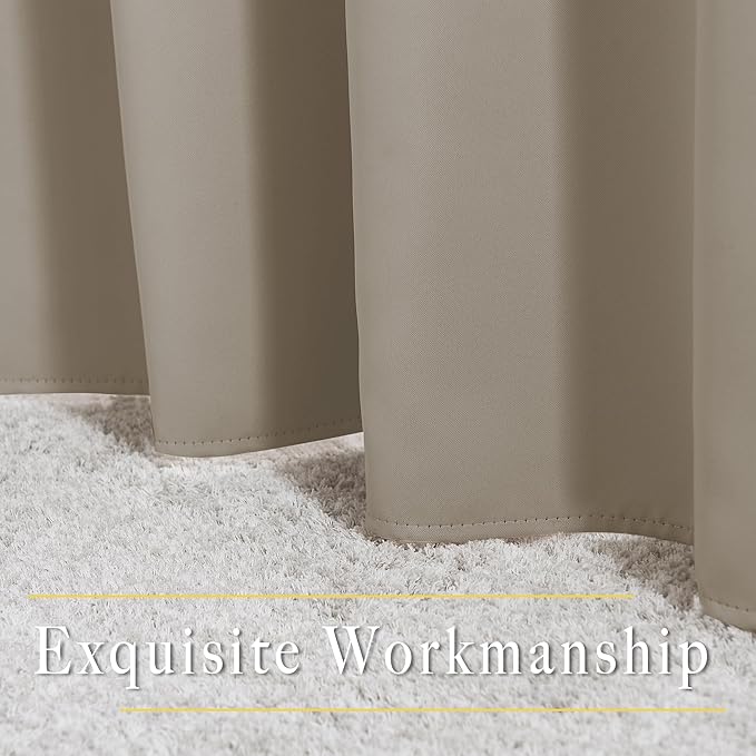- Amazing Material: Super heavy and soft Blackout Curtain Panels are very upmarket. Besides, 85%-99% light blocking, thermal insulated, soundproof, and energy-efficient. Thread trimmed and wrinkle-free, both sides are the same color.