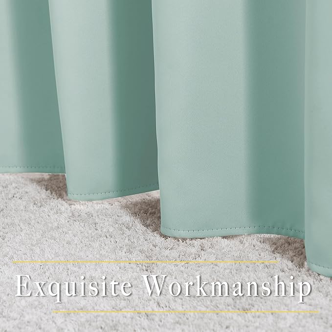 NICETOWN Insulated Curtains Blackout Draperies - Window Treatment Seafoam Green Blackout Eyelet Top Curtains/Panels for Bedroom/Living Room Window, 95 inches Long, 2 Panel Set