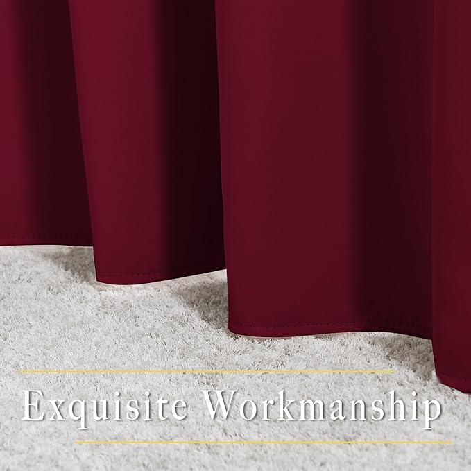 - Amazing Material: Super heavy and soft Blackout Curtain Panels are very upmarket. Besides, 85%-104% light blocking, thermal insulated, soundproof, and energy-efficient. Thread trimmed and wrinkle-free, both sides are the same color.