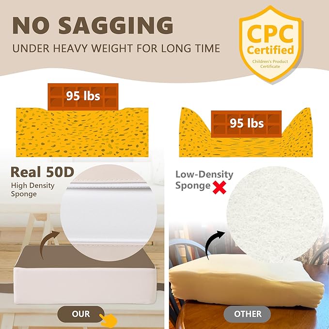 - 【REAL 50D Sponge, ZERO Sagging】The Booster Seat from Sylynvia Brand is of REAL 50D high-density sponge, which ensures softness and comfort while being able to withstand a weight of 80 pounds and will not sag when sitting for a long time, providing excellent support.This means that it has a long service life and your baby can use it from the age of 1 to 8 years old.