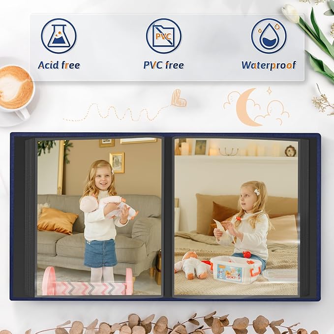 • EXCELLENT CRAFTSMANSHIP:The inner pages of the linen album are made of high-quality PVC material, which is acid-free, moisture-proof and dust-proof. Your photos can be kept for a long time
