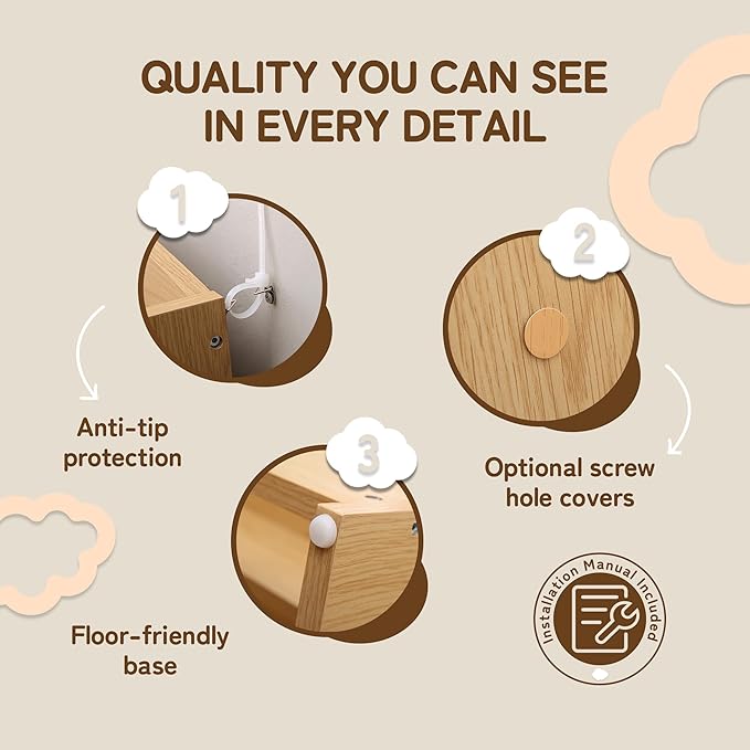 - 【EASY TO ASSEMBLE & CLEAN】- This kids bookshelf and toy storage comes with complete accessories and a user manual for quick assembly. And all boards are labeled to save your time and effort. Moreover, the smooth surface of the kids book shelf is easy to maintain and can be wiped clean with a damp cloth.🧹🎉