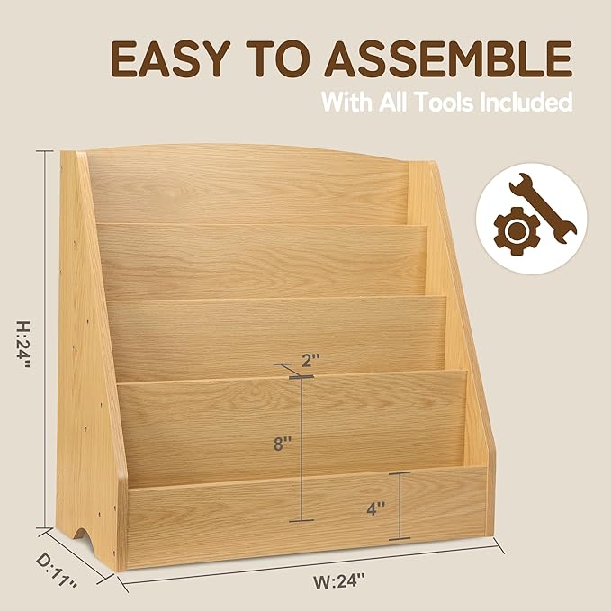 - 【STIMULATES CURIOSITY】- At 24" x 11" x 24" (L x W x H), this book shelf has a right height for children, allowing them to easily view and pick up their favorite books. Books can be displayed by front cover instead of the spine, making it easier for kids to choose books, fueling their love for reading.🪄📚