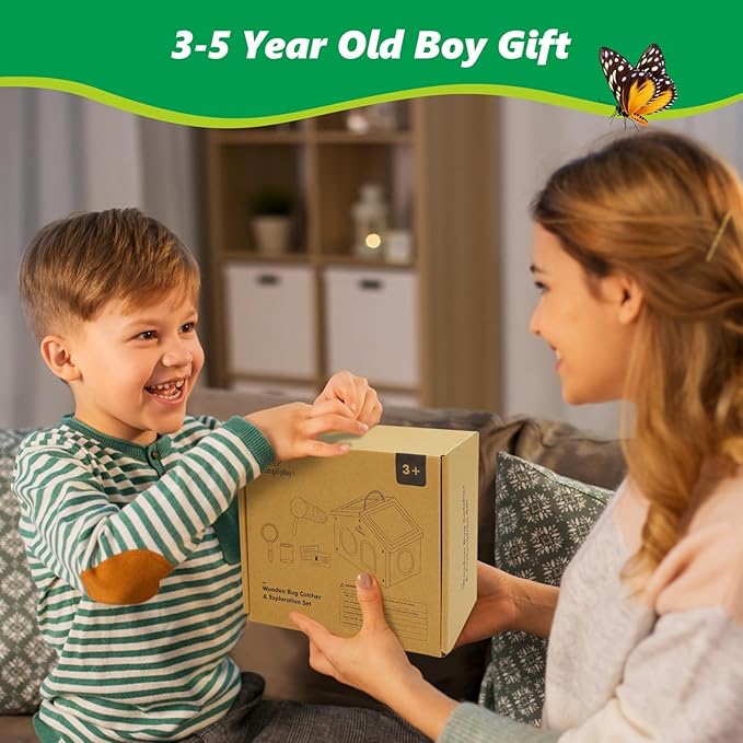 - 【Outdoor Insect Exploration Kit for Kids】 Encourage your child to step into nature and explore the fascinating world of insects! Bug catching kit includes a wooden insect observation house, bug-catching net, magnifying glass, insect storage jar, bamboo tweezer, and 15* informative insect fact cards to help kids safely and closely observe insects, sparking their curiosity and love for science!