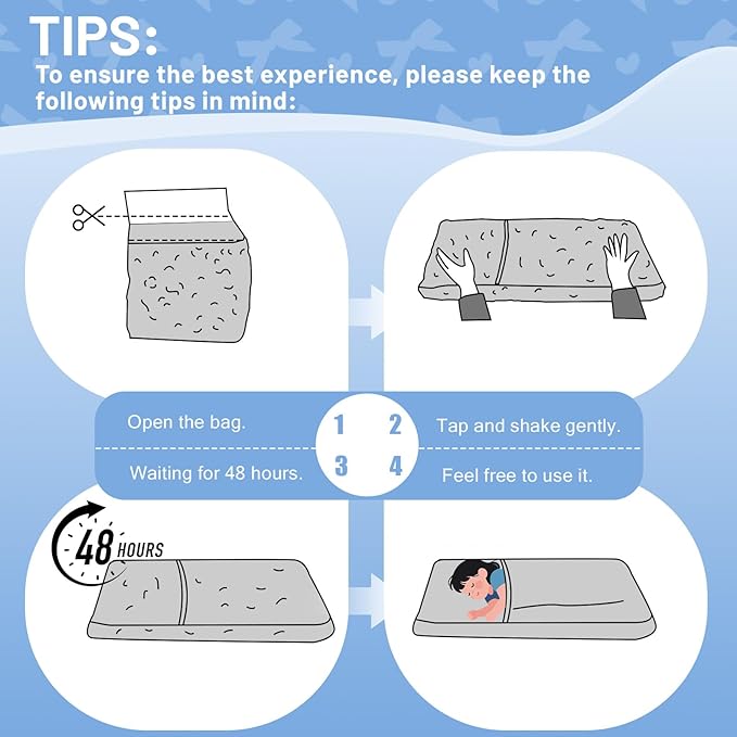 - Inflate 24-72 Hours: The kids' bean bag couch arrives compressed. Shake it initially and continue gently shaking over the next few days to help the filling expand evenly and achieve full rebound